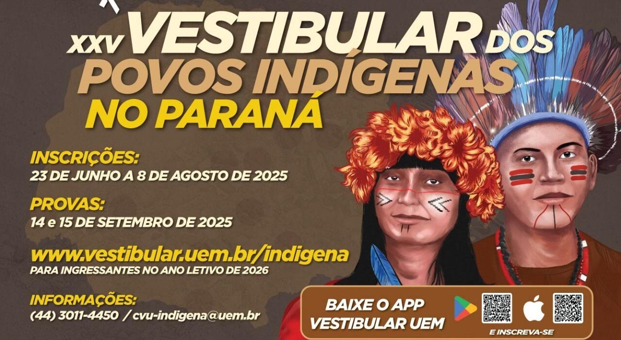 Começou nesta segunda-feira (23) o prazo de inscrições para os candidatos ao 25º Vestibular dos Povos Indígenas no Paraná, que tem a Universidade Estadual de Maringá (UEM) à frente da organização do concurso. As inscrições serão efetuadas nas Terras Indígenas até 8 de agosto. O processo é gratuito e oferta seis vagas em cada uma das Instituições Estaduais de Ensino Superior (IEES) e 10 vagas na Universidade Federal do Paraná (UFPR).