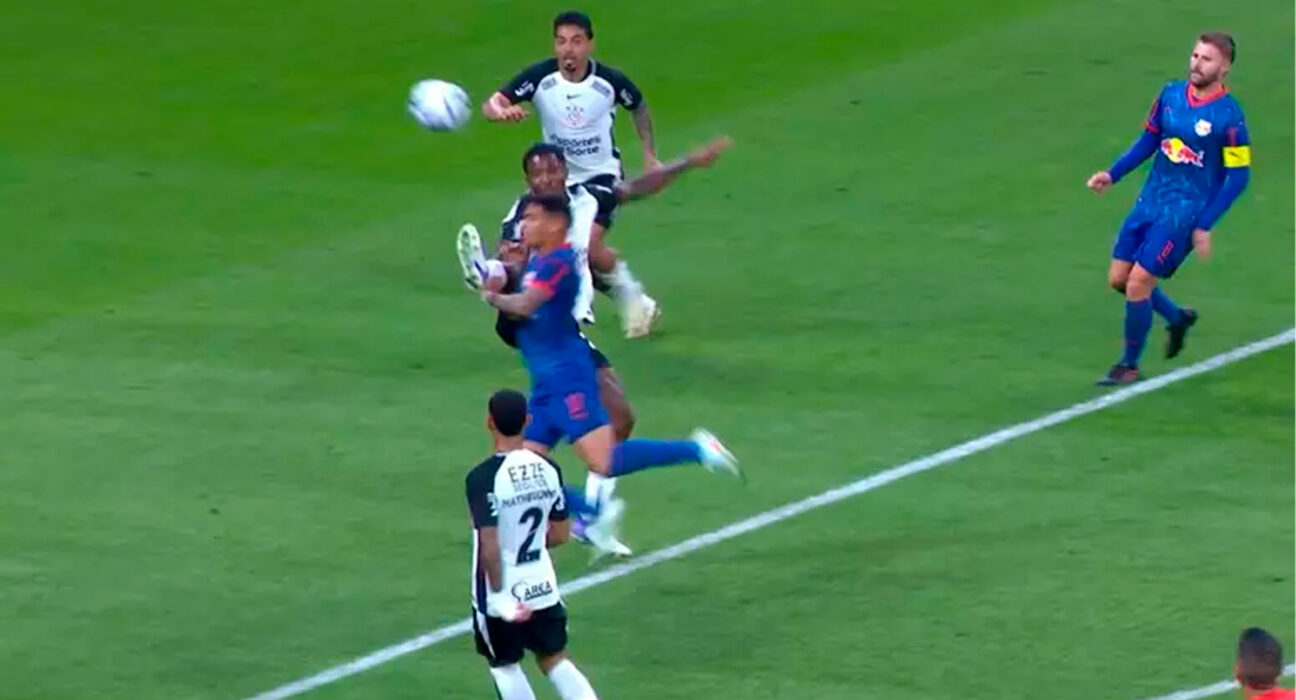 De acordo com o parecer divulgado nesta terça-feira (15), o zagueiro Cacá, do Corinthians, impediu a progressão de Vinicinho, atacante do Bragantino, ao esticar a perna dentro da área após um toque de cabeça do adversário. “O jogador do Corinthians não consegue alcançar a bola no ar e, com sua perna, obstrui a passagem do jogador do Red Bull Bragantino/SP dentro da área penal”, diz o documento. O contato, segundo o comitê, ocorreu na altura do ombro e ficou evidente pelo movimento da perna direita do defensor.