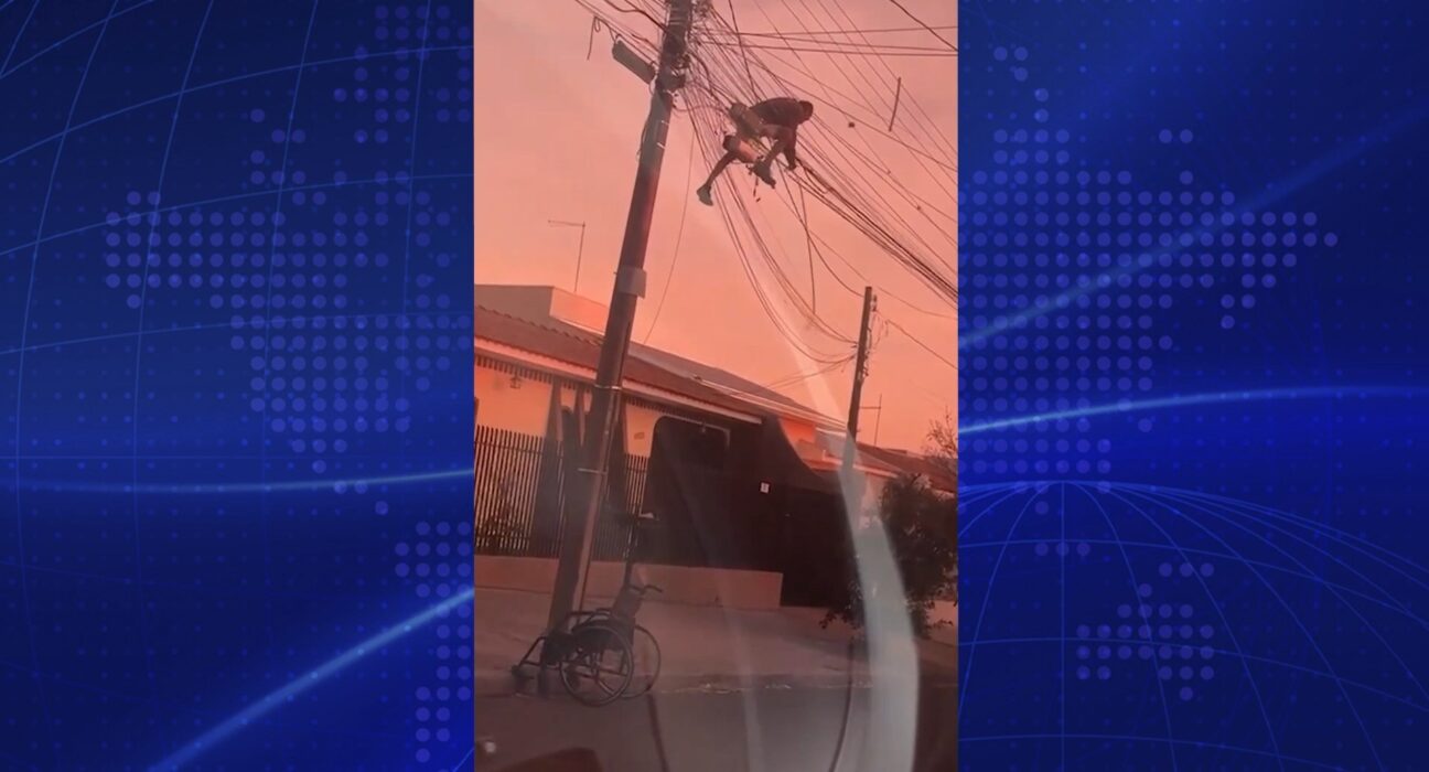 A cena inusitada chamou a atenção porque o suspeito, que estaria em uma cadeira de rodas, aparece levantando-se do equipamento para escalar o poste. Nas imagens, registradas por um morador de dentro de um carro, a cadeira pode ser vista deixada na base da estrutura.