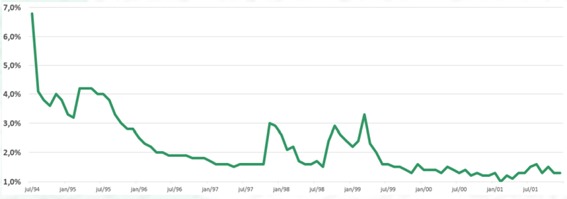 E aqui chegamos a um ponto crucial: boa parte das análises que comparam o desempenho do CDI desde o Plano Real desconsideram que a rentabilidade altíssima inicial estava atrelada ao combate à hiperinflação.