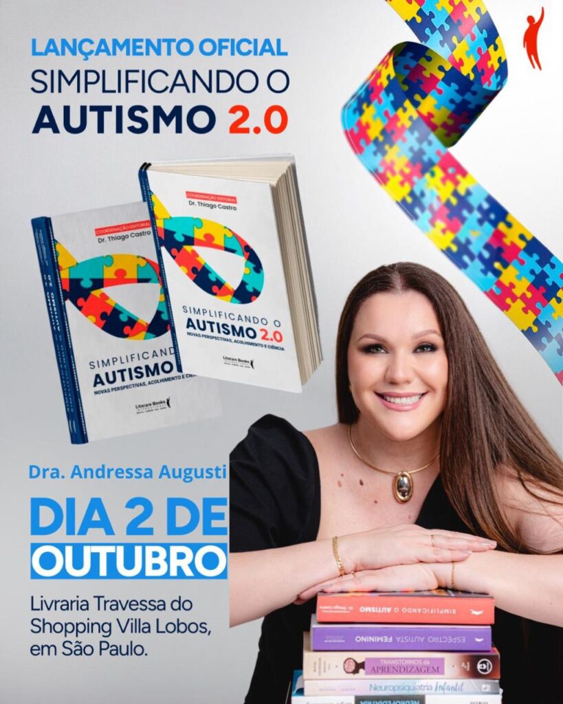 A coautora Dra. Andressa Augusti, em parceria com o Dr. Thiago Castro e outros renomados especialistas em autismo, anuncia o lançamento de seu primeiro livro. O guia oferece uma abordagem ampliada sobre o universo do autismo, trazendo informações práticas e perspectivas atualizadas voltadas a familiares, profissionais e interessados no tema.