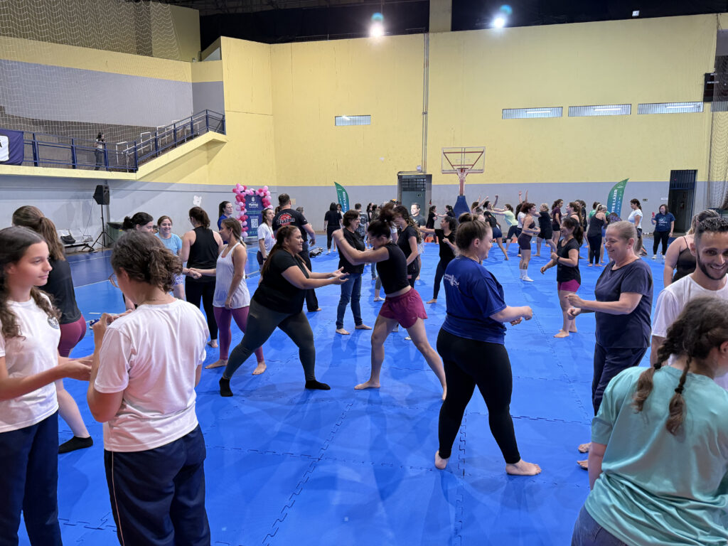 Durante o aulão, as participantes aprenderam técnicas básicas de defesa pessoal voltadas para o fortalecimento físico e o aumento da confiança e da segurança no dia a dia. A iniciativa integra ações voltadas à promoção da saúde e qualidade de vida por meio do esporte.