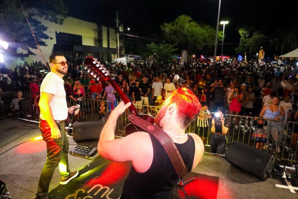 A contagem regressiva para a chegada de 2026 começou neste sábado, 27, com o show de pré-réveillon da dupla Murilo e Romário no distrito de Iguatemi. Os cantores animaram a noite com sucessos como “Boca Solta”, “Só Tem Olhos Pra Você” e “Trem Bão”, além de clássicos do sertanejo raiz e hits do sertanejo universitário. Promovido pela Prefeitura de Maringá, por meio da Secretaria de Cultura, o evento foi realizado na Praça Luís Moreira de Carvalho.
