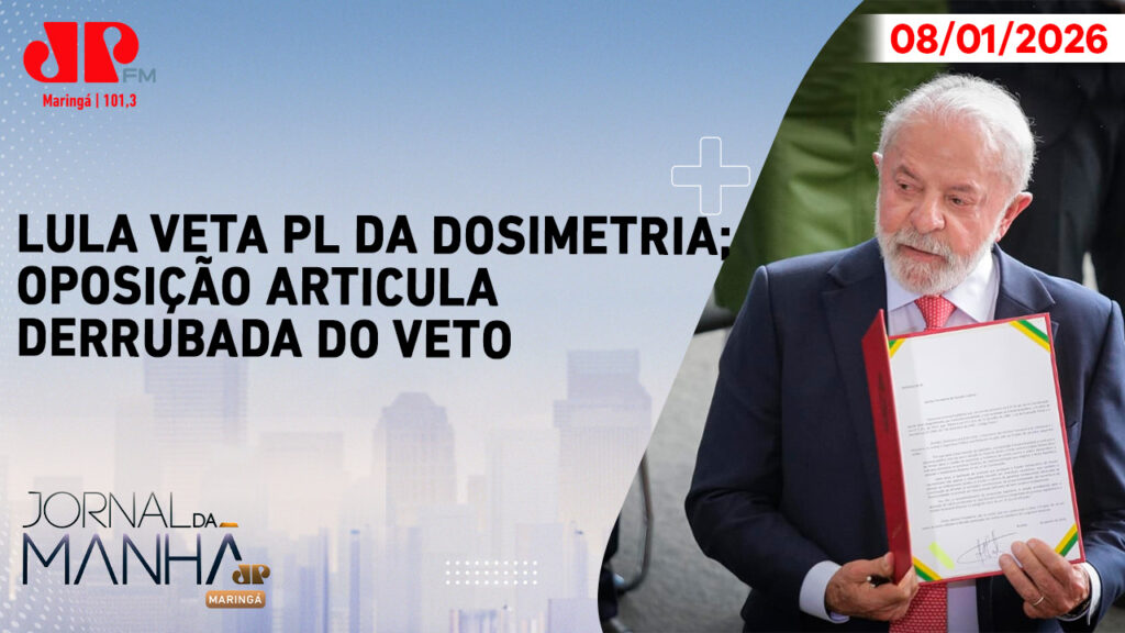 O presidente Luiz Inácio Lula da Silva vetou o PL da Dosimetria, aprovado pelo Congresso no fim do ano passado, que previa mudanças no cálculo de penas e poderia beneficiar condenados pelos ataques de 8 de janeiro de 2023, inclusive o ex-presidente Jair Bolsonaro. O veto foi assinado no Palácio do Planalto, durante cerimônia que marcou os três anos dos atos contra as sedes dos Poderes.