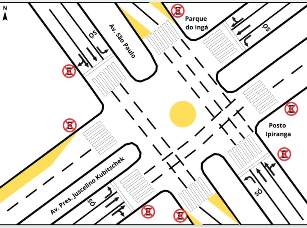 A expectativa é que, após o período de adaptação dos condutores ao novo desenho viário, o cruzamento apresente menor tempo de retenção e maior previsibilidade nos deslocamentos.