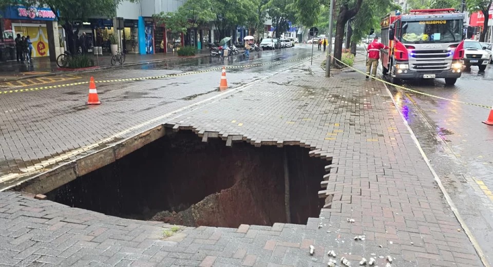Chuva abre Cratera gigante na Avenida São Paulo em Maringá