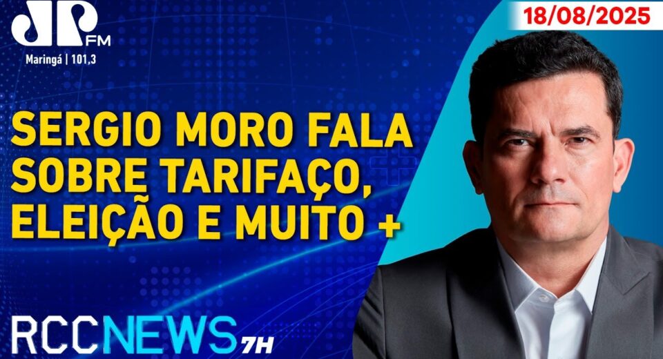 Nesta segunda-feira (18), o senador Sergio Moro, do União Brasil (PR), concedeu entrevista nos estúdios da Jovem Pan Maringá 101,3 FM. Entre os assuntos abordados na bancada do RCC News, o senador comentou sobre o tarifaço dos EUA, o governo Lula, a possibilidade de candidatura ao governo do Paraná e muito mais.