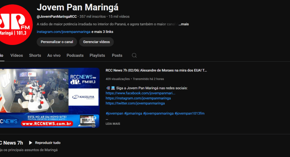 Descubra o Canal da Jovem Pan Maringá no YouTube