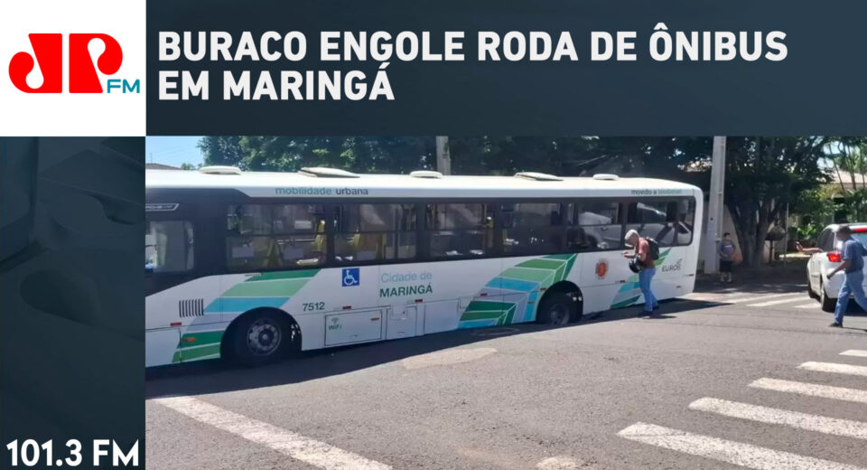 Buraco engole roda de ônibus em Maringá